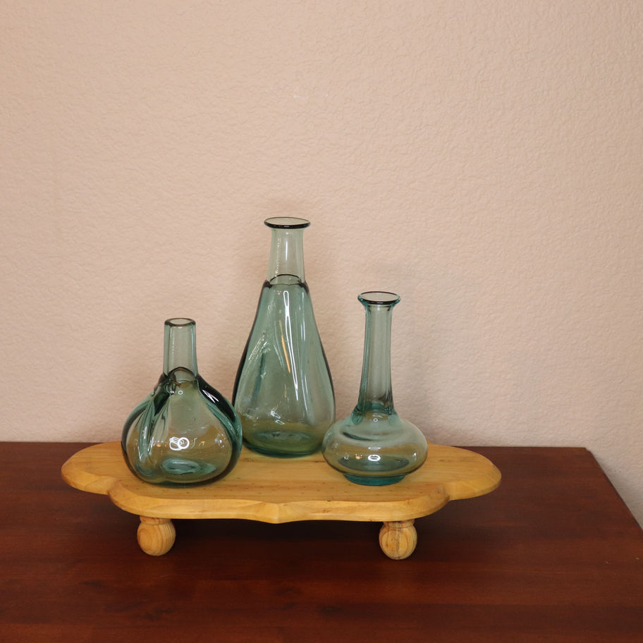 Mouthblown by skilled artisans in Colombia. Grouped together or on their own, this set creates a sweet home for your petite fresh cuts. Hand wash. 3 vases per set.